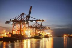 Containerbruecken am Containerterminal Eurogate bei Nacht