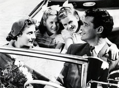 5519627 (9002126) Szene aus dem deutschen Spielfilm ‘Das doppelte Lottchen’ nach dem Kinderbuch von Erich Kästner (Kaestner) . Die beiden Maedchen sind die Zwillinge Jutta und Isa GÜNTHER (Guenther) , links Antje WEISGERBER , rechts Peter MOSBACHER , 1950 ,